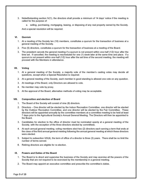 3. Notwithstanding section IV(1), the directors shall provide a minimum of 14 days' notice if the meeting is