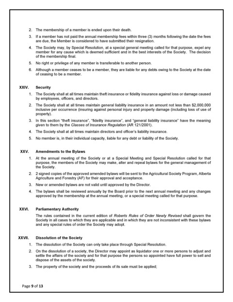 2. 2 signed copies of the approved amended bylaws will be sent to the Agricultural Society Program, Alberta
